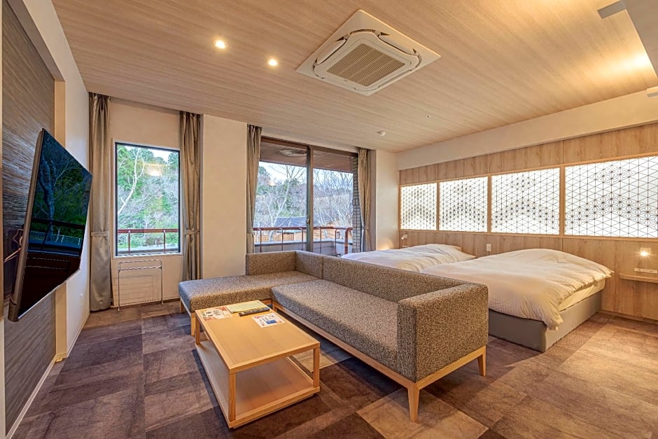 The twin room includes a shared bathroom fitted with a bidet, a hairdryer and slippers. The air-conditioned twin room features a flat-screen TV, tatami, a safe deposit box, an electric kettle as well as garden views. The unit has 2 futons.