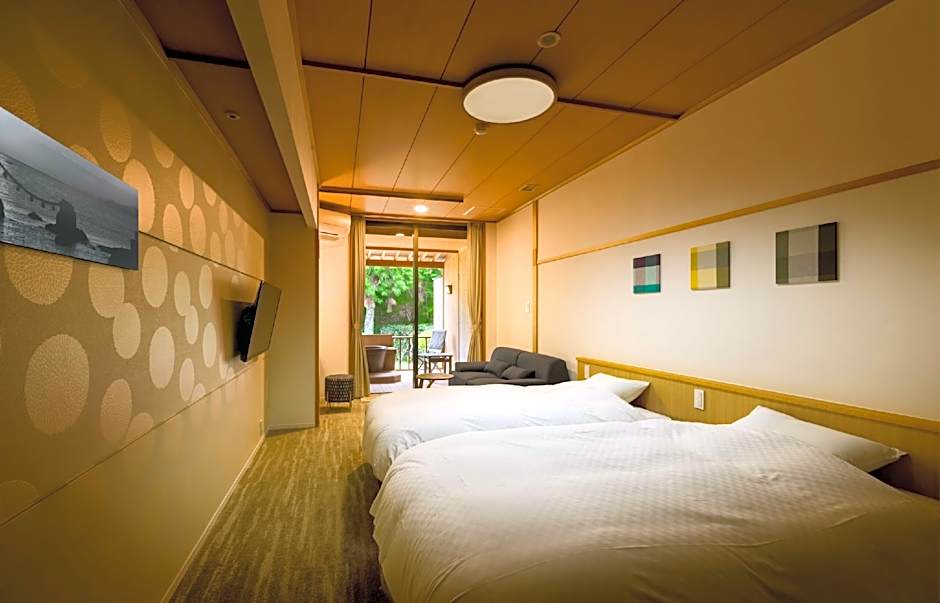 The twin room offers air conditioning, a safe deposit box, as well as a private bathroom boasting a bidet and a hairdryer. The twin room provides an electric kettle, yukata, heating, a flat-screen TV, as well as garden views. The unit has 2 beds.